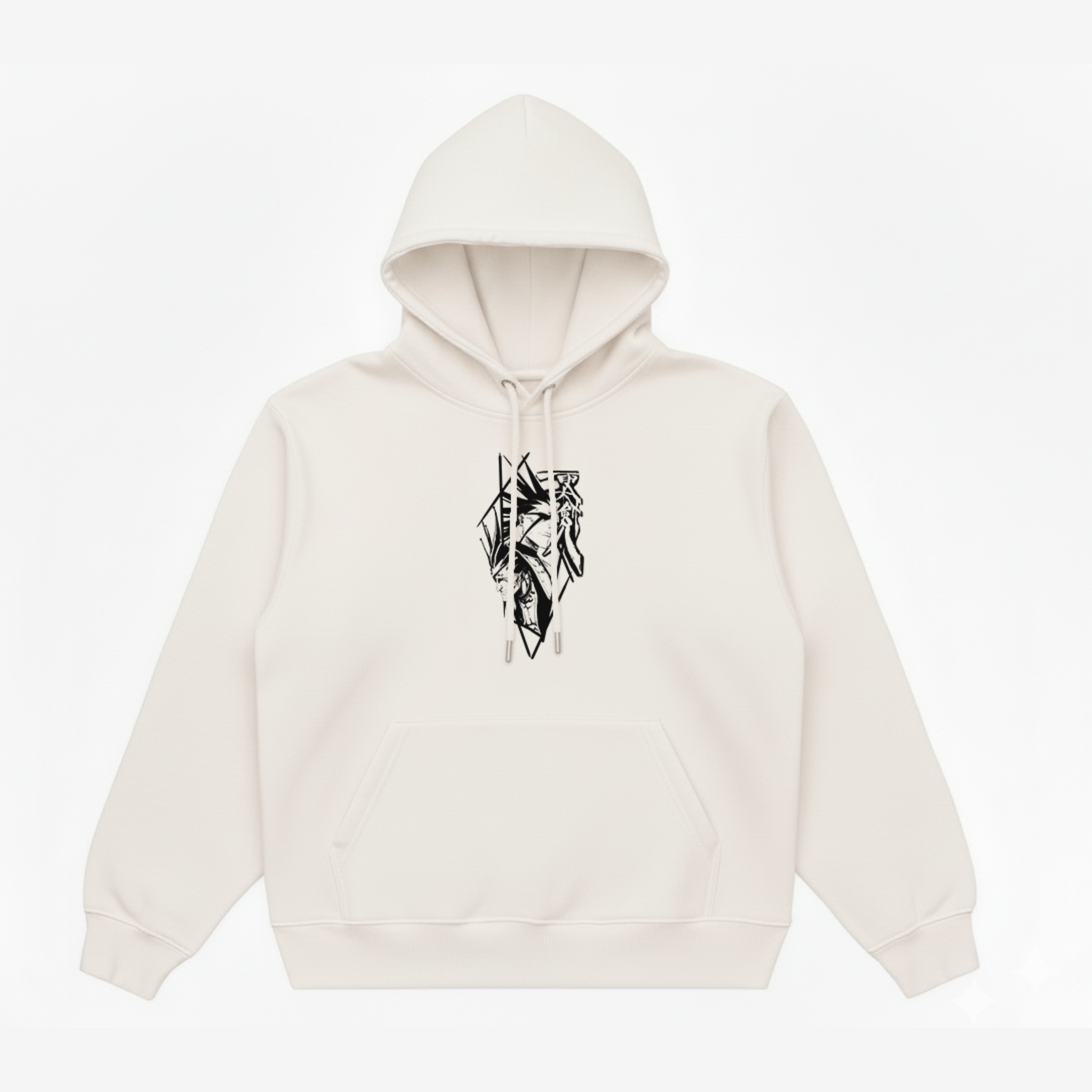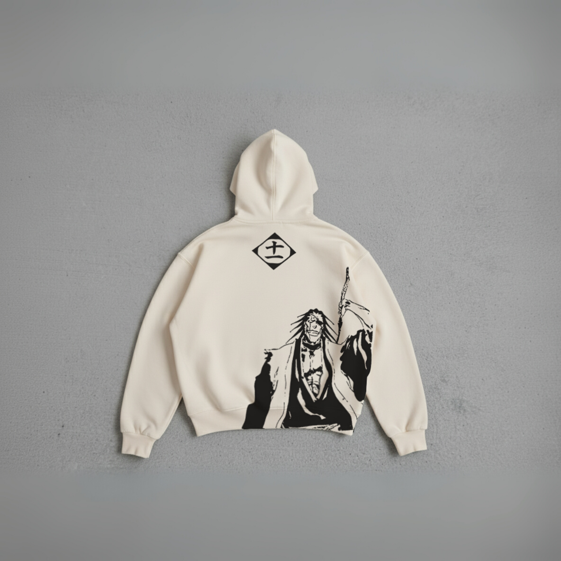 Hoodie Oversize Heavyweight 340GSM – Zaraki Kenpachi Bleach™ – 100% Coton Premium – Blanc Cassé
