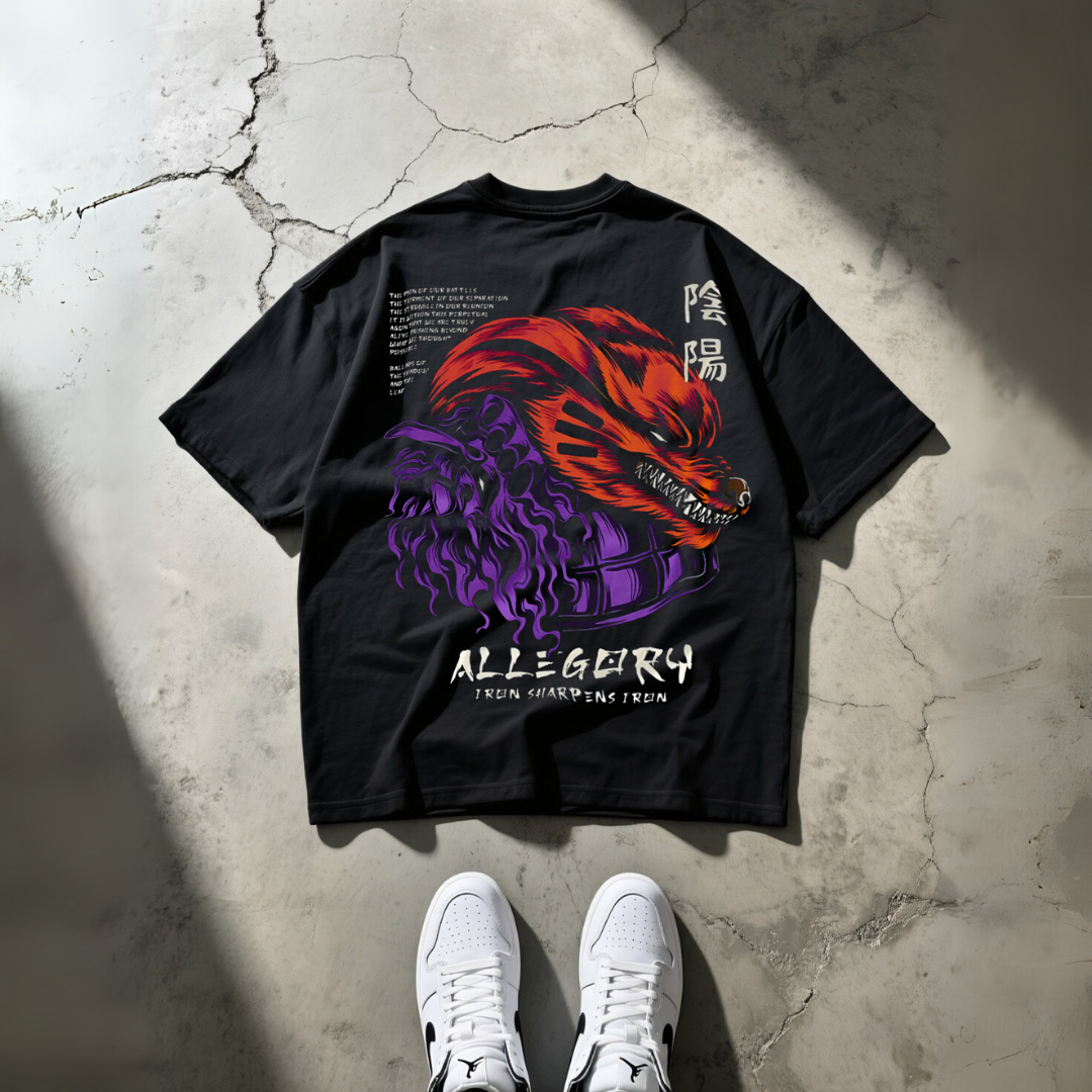 T-Shirt Oversize Heavyweight 240GSM – Kyubi Naruto™ – 100% Coton Premium – Noir