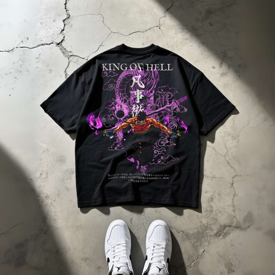 T-Shirt Oversize Heavyweight 240GSM – Roronoa Zoro One Piece™ – 100% Coton Premium – Noir